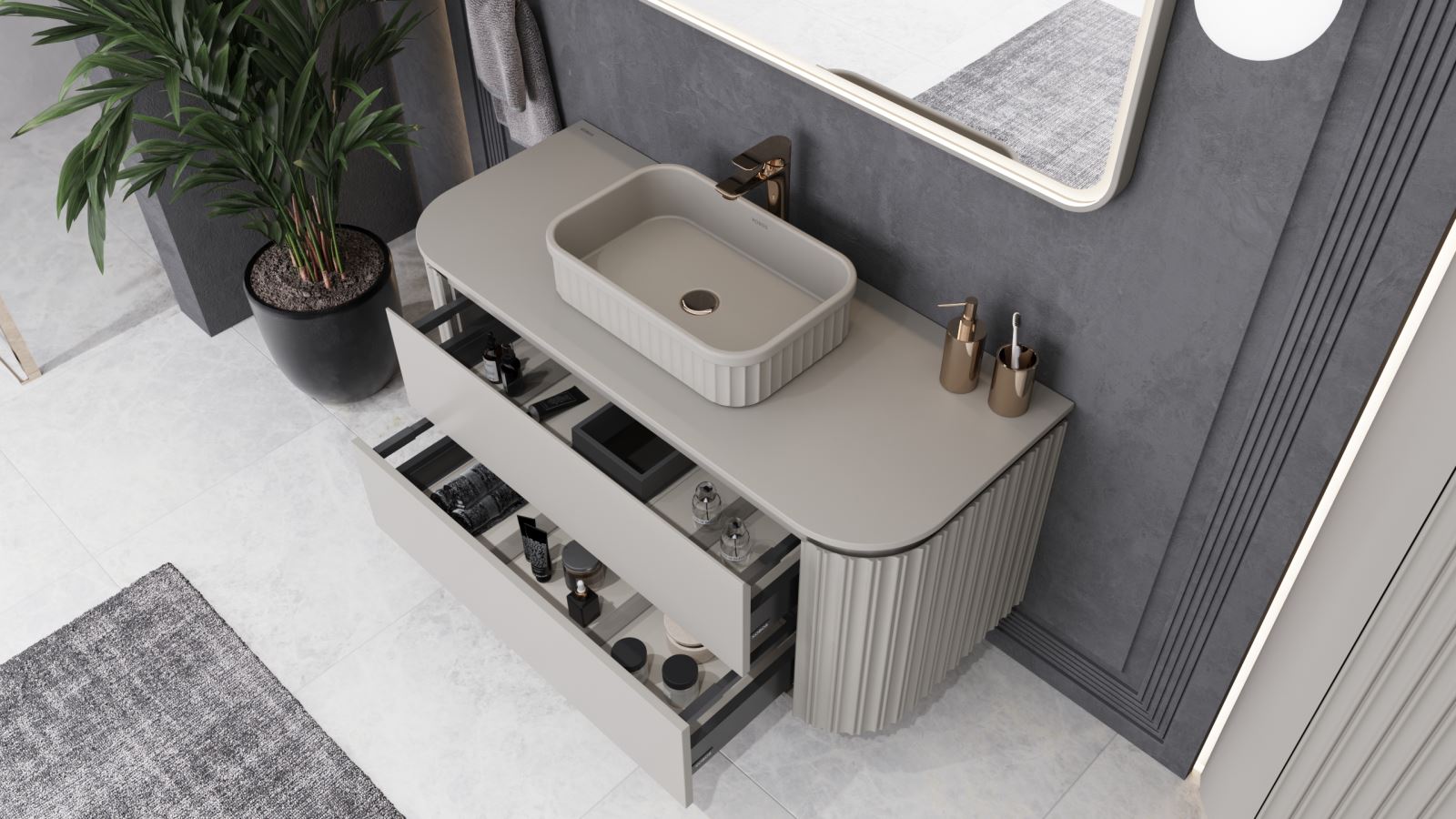 çizgilerle şıklığı, fonksiyonel detaylarla konforu birleştirin. Unutmayın, doğru seçilmiş bir banyo dolabı,