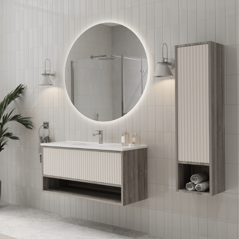 Elegant fugalı yüzeyleriyle modern bir estetik sunan model, geniş depolama alanlarıyla hem şıklık hem de fonksiyonellik sağlar. Banyonuzda konfor ve zarafeti bir arada isteyenler için ideal bir seçimdir.