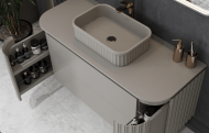 Gloria, modern ve klasik tasarımın zarif birleşimiyle banyonuza şıklık katar. Fuga kapakları ve fugalı çanak lavabosu, lüks detaylarla zenginleştirilmiş bu model, yuvarlatılmış hatlarıyla dikkat çeker. Geniş depolama alanı ve şık aynasıyla fonksiyonellik ve estetiği bir araya getirir.